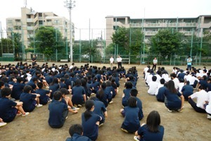 6月19日(水)、生徒会朝会終了後に「体育館からの避難訓練」が行われました。前回同様、体育館という密集状態からの避難で、避難開始4分以内に校庭へ集合・点呼が完了することを目指しました。生徒たちはみんな整然と避難をしていましたが、校庭に出てから整列・点呼までに時間がかかってしまい、避難完了までに6分以上かかってしまいました。次回は校庭に避難してからの行動のスピードアップを心がけて欲しいと思います。救命は時間との戦いです。