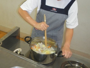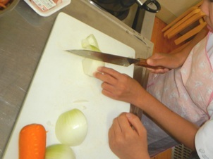 7月17日(水)、河口湖移動教室で予定されている「カレー作り」に向け、調理実習でカレーを作りました。野菜の皮をむいたり、大きさをそろえて切ったりと、班のみんなで協力して調理しました。給食の時間に、自分で作ったカレーを楽しく美味しく食べました。