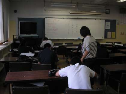 写真は本日の2時間目で上から1年生の英語・2年生の理科・3年生の国語です。参加している生徒は頑張っています。夏休みの始めに生活のリズムを付ける意味でもしっかり続けてほしいと思います。