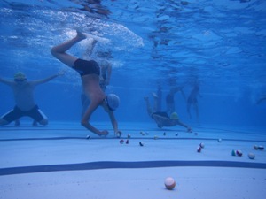 7月24日(水)、I組夏季水泳教室の3日目です。前日の雷雨の影響が心配され、気温はそれほど上がらなかったのですが、水温は今までで一番高く、みんな気持ちよさそうにプールに入っていました。「ボール拾い」などの水慣れを元気いっぱいに行った後、各グループごとにクロールや背泳ぎなどの練習をしました。自由時間は楽しく「ダンス」や「追っかけっこ」などをして過ごしました。