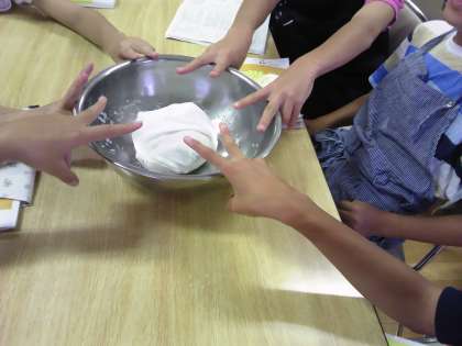宿舎に着いてうどん作りに挑戦中です。今、こねたうどんを寝かせているところです。