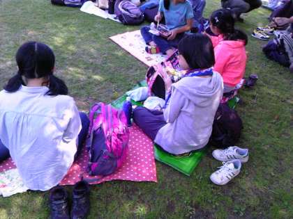 一生懸命歩いて、お腹がすいたようです。みんなおいしそうに食べています。
