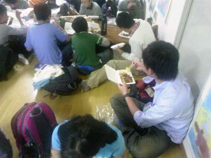 ちょっと早いですが、動物を見て感動した後にお弁当を食べます。けっこうお腹がすいているようです。