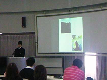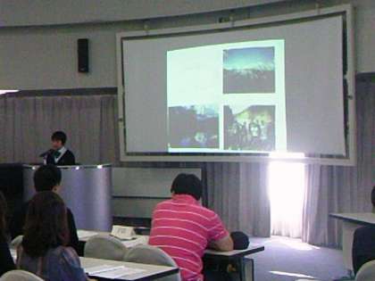 カナダのウィニペグ市へ派遣された生徒の報告会です。本校生徒の発表です。