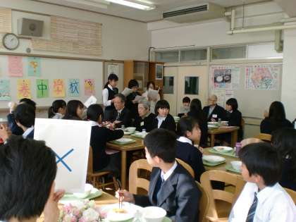交流給食です! 公開日 2013/11/15 更新日 2013/11/15 学校生活 11月14日(木)に交流給食がありました。近所の高齢者の方々を招待して、生徒の代表と楽しいひとときを過ごしました。 いいね(0)
