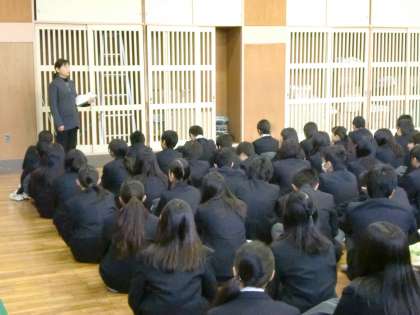 学年朝会 公開日 2013/11/20 更新日 2013/11/20 学校生活 11月20日(水)、各学年とも学年朝会が行われています。明日からの期末考査に向けて、そして残る2学期の仕上げに向けて、学習と生活の指導がありました。特に3年生は進路の話もあって、緊張感が漂っていました。 いいね(0)