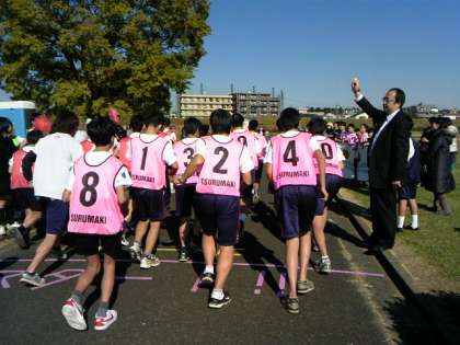 5キロメートルコースがスタートしました。3キロメートルでは本校1年生男子がダントツで1位でした。