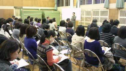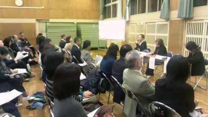本日、弦巻中学校にて『優郷の学び舎』健全育成協議会全体会が開催されました。参加者は約60名でした。会に先立ち、出前懇談会として区教育委員会より次年度から始まる第2教育ビジョンについての説明がありました。