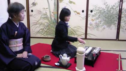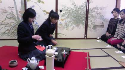 今日は、煎茶部がせたがや梅まつりに参加し、一般の方々にお茶をいれます。