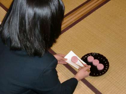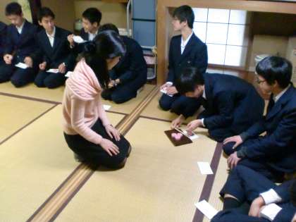 3月13日(木)の午前中、3年生は茶道体験を行っています。卒業式本番前のちょっと落ち着いたひとときです。