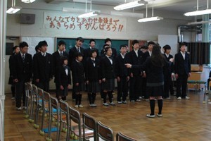 3月13日(木)、I組特別教室において「お別れ会」が行われました。全員合唱「Let's search for tomorrow」「HEIWAの鐘」のあと、1・2年生からは、今までの感謝の気持ちを込めた「おくる言葉」を、3年生からは弦巻中学校での3年間の生活の思い出とI組の伝統を伝えていきたいという思いを込めて「別れの言葉」を読み上げました。生徒だけでなく、教員・保護者の皆様も、3年生徒の思い出に胸が熱くなり、「旅立ちの日に」の合唱を聴きながら涙ぐむ姿もありました。とても素敵なお別れ会をありがとうございました。