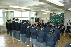4月9日(水)、I組特別教室において新入生と2・3年生の対面式が行われました。みんなで自己紹介をした後、昨年の合唱コンクールで発表した「Let's search for tomorrow」と「HEIWAの鐘」を歓迎の気持ちを込めて歌いました。「分からないことがあったら、私たちに聞いてください!」「これから一緒に頑張りましょう!」という先輩たちの言葉に、新入生9名の不安な気持ちは希望へと変わっていったことと思います。これから1年間、みんな仲良く協力しながら、充実した中学校生活を送ってほしいと思います。