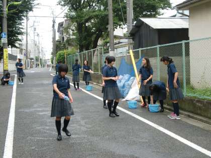 打ち水週間 公開日 2014/07/09 更新日 2014/07/09 学校生活 今週の朝は「打ち水」です。まだ梅雨は明けていませんが、ちょっと蒸し暑くなってきましたので、打ち水にはちょうど良いかもしれませんね。今日も朝早くから熱心に打ち水をしていました。 いいね(0)