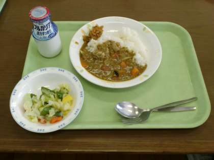 1学期最後の給食! 公開日 2014/07/17 更新日 2014/07/17 学校生活 7月17日(木)、明日が終業式ですが、その前に今日で給食は1学期最後です。メニューは「夏野菜カレー、福神漬、カラフルサラダ」でした。色とりどりの食材で味とともに目も楽しませてくれました。昼休みには給食委員が「食育」の放送をしました。 いいね(0)