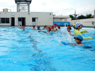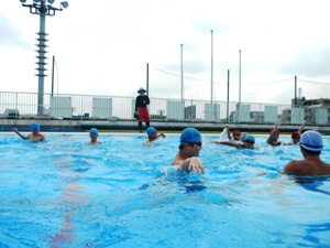 7月22日(火)、I組夏季水泳指導の1日目です。今日の参加者は27名でした。天気は曇り空でしたが水温は高く、みんな元気よく泳いでいました。