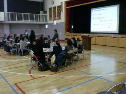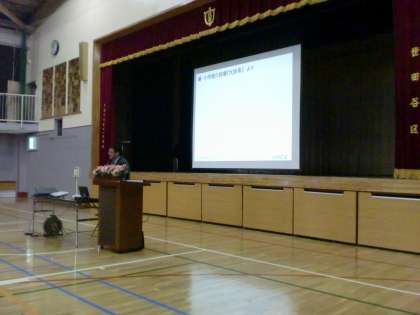 11月8日(土)、10時半より弦巻中学校体育館において、三校合同の家庭教育学級が開催されました。テーマは「考えよう、ケータイ」。NPO法人 企業教育研究会のご協力を得て、体験用iPadを用いての講義でした。携帯電話の安心安全活用や正しい知識を得ることができました。