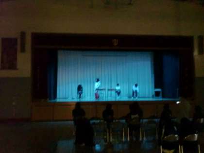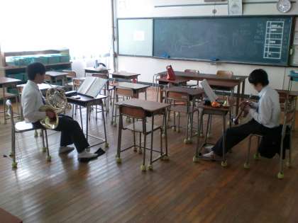 今日も部活動が活発に行われています。演劇部は体育館でプチ公演。吹奏楽部は発表会に向け猛練習をしています。