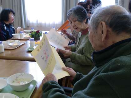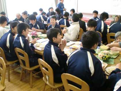2月9日(月)、I組と高齢者施設の方々との交流給食が行われました。手紙をお渡ししたり、歌の披露があったりとよい「おもてなし」ができたのではと思います。