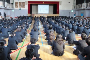 4月15日(水)、本校体育館においてマナー講演会が行われました。キャリアアドバイザーの大城京子先生を講師にお迎えし、マナー全般にわたるお話をしていただきました。キャビンアテンダントの経験など、ご自分の体験談を通した具体的で分かりやすいお話で、生徒たちは皆真剣に聞いていました。今日学んだことを、これからの生活に生かしてほしいと思います。