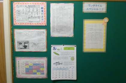 5月13日(水)、3年生は今日から修学旅行へ。台風一過で天気も良く、出発できました。明日は給食試食会です。ランチルーム前の掲示板には、食育コーナーがあって、食のさまざまなお知らせをしています。明日ご参加の方、また学校に来られた方は、ぜひご覧ください。