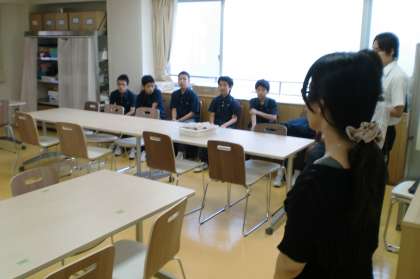 7月10日(金)の午後、2年I組は上町工房へ職場見学に行きました。梅雨の晴れ間の暑い日でしたが、無事に終わりました。工房では、職場の説明と実際の仕事体験、さらに体をほぐす運動まで行いました。