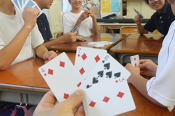 7月14日(火)、今日は7月最後の活動日! みんなで楽しくトランプをしました。部長を中心にグループの分け方を決め、グループ毎に「ババ抜き」や「神経衰弱」などを楽しみました。2学期も自分たちで話し合い、協力し合って自立部の活動を盛り上げていって欲しいと思います。
