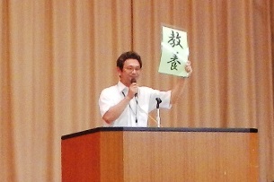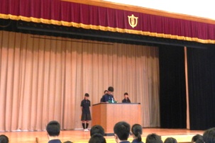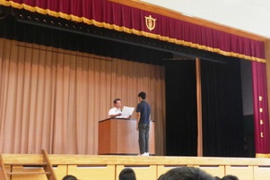 7月17日(金)、本校体育館において終業式が行われ、校長先生からは「教養」「品格」についてお話がありました。読書を通して教養を深め、「真・善・美」を追求し物事の本質を見極める目をもってほしいと思います。各学年の学級委員長からは、一学期を振り返り、成果と反省や2学期に向けての抱負について話がありました。また、実用英語検定の表彰が行われました。