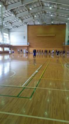 体育館では、バレーボール部とバスケットボール部合同で、ダッシュ100本をたやっています。