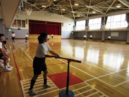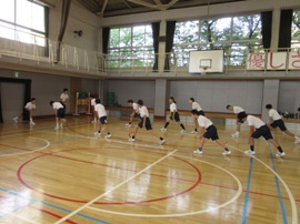 夏休み中の自立部の活動です。8月27日(木)は体育館においてティーボールの試合を行いました。授業とは違い、自分たちだけでチーム分けをしたり、打順や守備位置を考えたりしました。外は秋のような涼しさでしたが、体育館の中は生徒たちの熱気で暑く盛り上がっていました。
