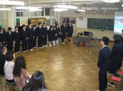 お別れ会を行いました。( I 組 ) 公開日 2010/03/05 更新日 2010/03/05 I組 3月5日(金)の5時間目にお別れ会を行いました。I組を卒業していく生徒と、送り出す先生や生徒と、合唱をしたり思い出をふりかえったりしながら、楽しいながらも涙をこらえる姿が見られました。多くの保護者の皆様にもご参加いただきました。 いいね(0)