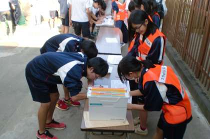 10月13日(火)の午後、本校において避難所運営訓練が行われました。学年ごとに分かれて様々な体験活動を行いました。