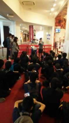 キッザニアの入り口で説明を受けて、これから中に入ります。楽しみな体験活動です。