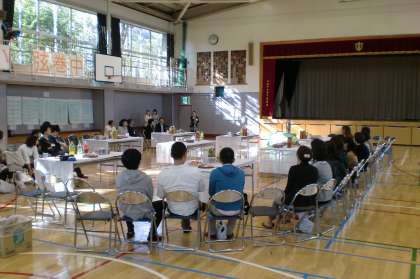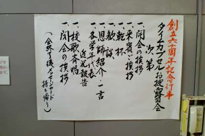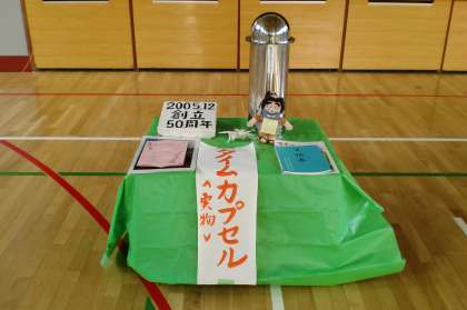 10月18日(日)、14時より本校体育館にて、50周年時に埋めたカプセルのお披露目会が行われています。プチ同窓会のようでもあり、約40人ほどが参集してくれました。橋本元校長先生や10年前に本校にいた先生方も参加して、賑やかに会が行われています。