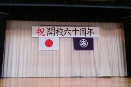 60周年記念行事が明日に迫りました。体育館には明日の看板がかけられました。午後は準備です。