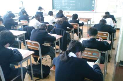 期末考査最終日 公開日 2015/11/19 更新日 2015/11/19 学校生活 11月19日(木)、期末考査最終日となりました。生徒はみんな集中しています。最後まであきらめずに頑張ってください! いいね(0)