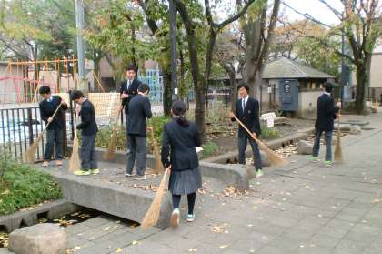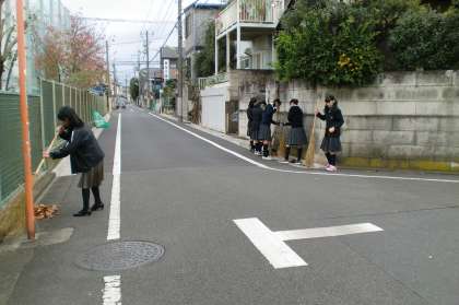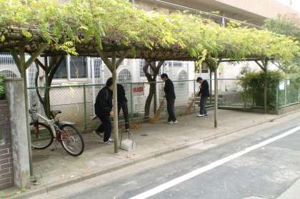 11月25日(水)、今日から3日間、学び舎落ち葉掃きが行われます。朝早くから熱心に落ち葉を掃いていました。小学生も参加して、地域をきれいにする取組です。