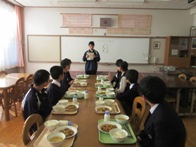 11月27日(金)、今日は1年ABC組の給食委員さんと1年I組との合同給食でした。今回は1学期よりも、たくさんお話しできたようです。3学期もよろしくお願い致します。