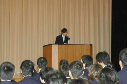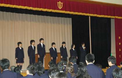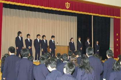 4月21日(水)、第一回生徒会朝会が行われました。生徒会長の話、生徒会役員の紹介、各専門委員会の委員長の紹介などが、生徒会役員の司会により立派に行われました。生徒自治への第一歩を踏み出した朝会となりました。