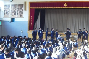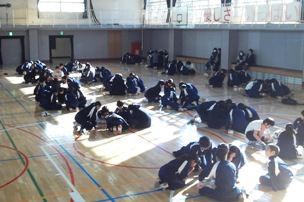 1月26日(火)の午後、体育館で2年生とI組の合同百人一首大会が開催されました。日本文化の伝統に触れ、豊かな心を育成することや、他のクラスとの親睦を深めること等を目的として行われました。2学年のリラックスした良い雰囲気の中、いたるところで熱戦が繰り広げられていました。