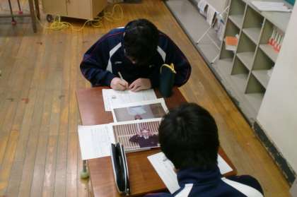 1月29日(金)、I組での国語の授業です。思い出の写真を見ながら、見出しをつけたり、説明文を考えたりしています。また、グループ活動をしながら助け合っています。