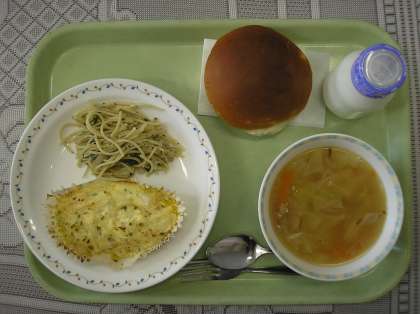 私の好きな給食メニューシリーズ第3弾 公開日 2010/04/30 更新日 2010/04/30 校長室より 私の好きな給食メニューシリーズ第3弾は、「鮭のマヨネーズ焼き」です。オレンジパンも文字通りオレンジの風味がしてとてもおいしいです。スパゲッティバジリコや野菜スープも絶妙な味です。 写真左から:鮭のマヨネーズ焼き・スパゲッティバジリコ・オレンジパン・野菜スー プ・牛乳(920kcal) (校長) いいね(0)
