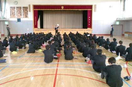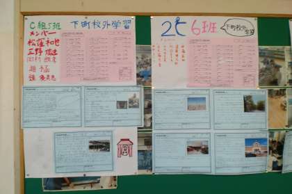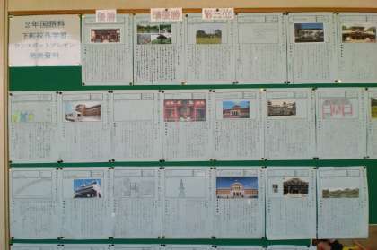 2月8日(月)、明日は2年生の校外学習です。1時間目に事前指導を行いました。4階の2年生の掲示板には、事前学習をプレゼンしたものや明日の行程が掲示されています。