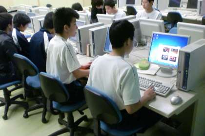 2月15日(月)、パソコン室で授業を行っています。卒業文集の原稿をパソコンで打っています。