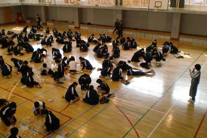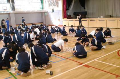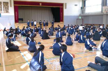 3月4日(金)、午後に3年生とI組で百人一首大会を行いました。3年生は3年間、I組と大会を行ってきました。仲の良い雰囲気で、競技に集中していました。