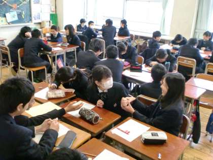 3月14日(月)、1年生は学期の反省をしていました。あと3週間で上級生になります。良き先輩になれるよう自分を見つめてくださいね。