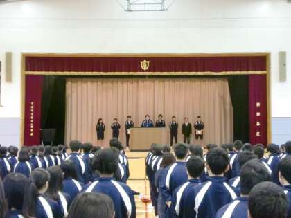 3月24日(木)、生徒会朝会が行われました。来年度への引継など、各委員長から説明がありました。