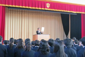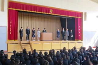 4月6日(水)、本校体育館において始業式と着任式が行われました。1年生は2年生に、2年生は最上級生の3年生に進級し、上級生としての新たな決意と希望に胸をふくらませた式となりました。中学校は大人への架け橋です。自分を高める努力を一歩一歩積み重ね、自分の人生を切り開いていく力を身につけて欲しいと思います。