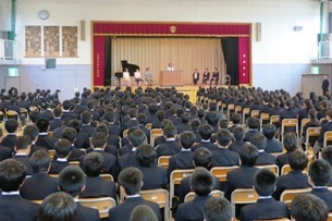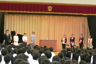 4月28日(木)、本校体育館において離任式が行われました。お世話になった先生方へ感謝の気持ちを込めて、代表生徒による「お礼の言葉」と「花束の贈呈」をしました。離任なさった先生方からは、弦巻中に対する熱い想いのこめられたメッセージをいただき、生徒たちも真剣に聞き入っていました。最後は生徒全員で「旅立ちの日に」を合唱し、離任された先生方を送りました。とても気持ちのこもった素敵な離任式でした。