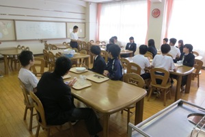 合同給食(I組) 公開日 2016/05/10 更新日 2016/05/10 I組 5月2日(月)、今日は3年D組と3年I組との合同給食でした。部活や修学旅行など、楽しく会話をしながら一緒に給食を食べました。3年生の1学期の合同給食は今日で終わりましたが、2学期もよろしくお願い致します。 いいね(0)