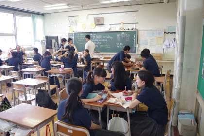 代表の班は1,2年生にも発表に行きます。修学旅行で学んだことを後輩に繋げてほしいです。